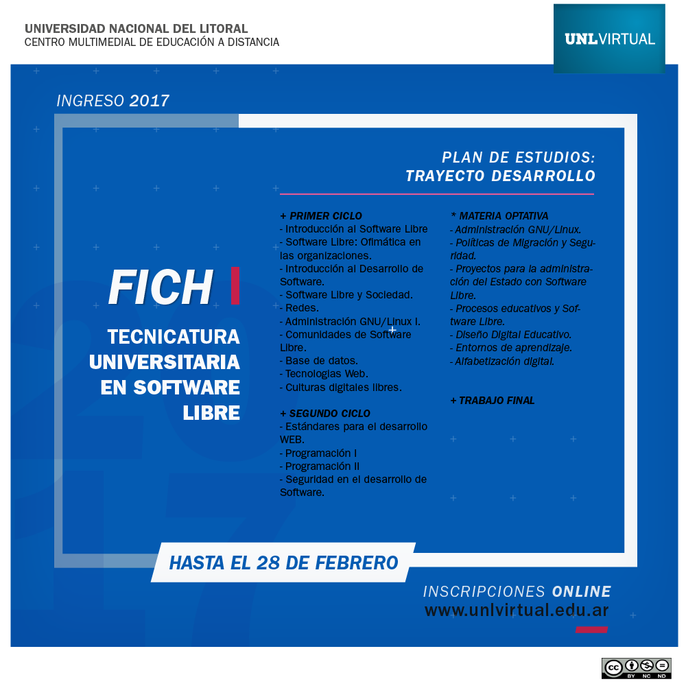 Esta abierta la inscripción para la Tecnicatura Universitaria en Software Libre de la Universidad Nacional del Litoral.